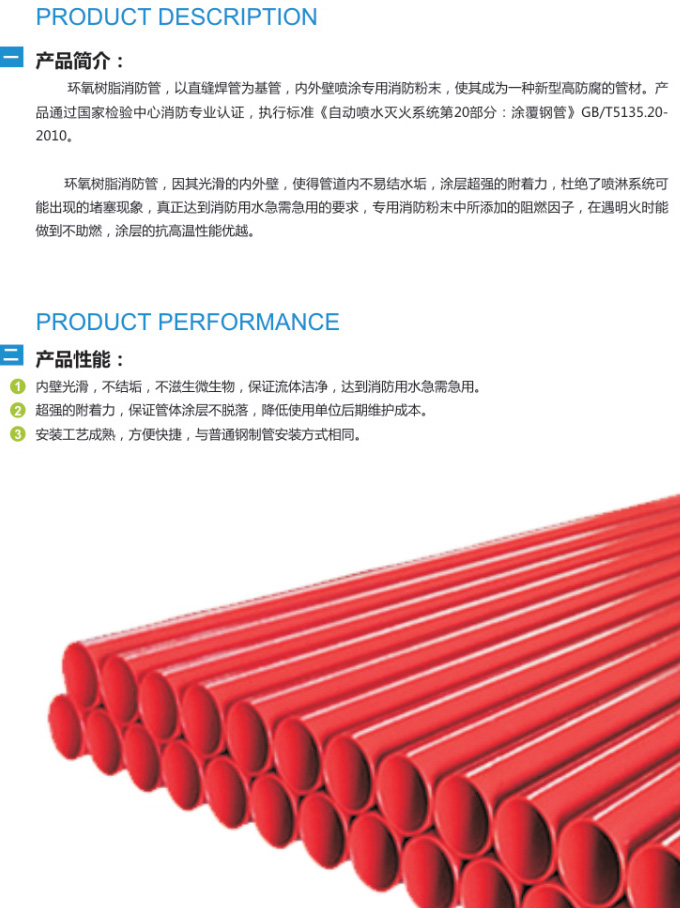 簡(jiǎn)介:環(huán)氧樹(shù)脂消防管,以直縫焊管為基管,內(nèi)外壁噴涂專用消防粉末,使其成為一種新型高防腐的管材。產(chǎn)